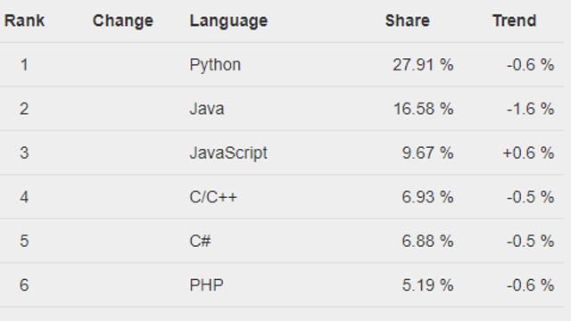 코딩 트렌드 다트Dart, 3월 PyPL 인기 프로그래밍 언어 랭킹 18위…티오베 지수 순위 36위