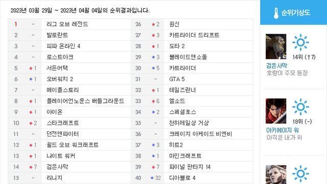 순위분석 아키에이지 워 VS 프라시아 전기, 초접전