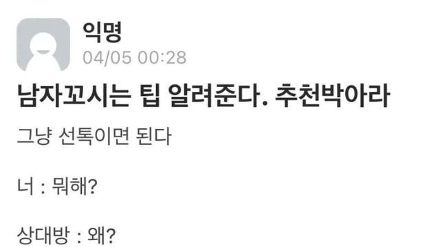 남자 꼬시는 팁 알려준다