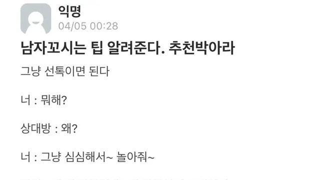 남자 꼬시는 팁 알려준다.
