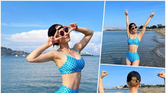 심으뜸 체크무늬 비키니 입고서 볼륨감 몸매 뽐내…