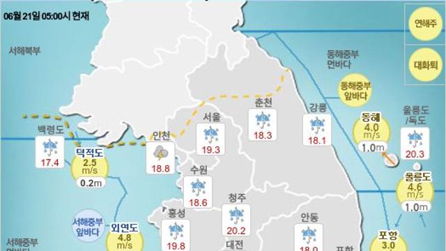 오늘의 날씨, 6월 21일 오전 6시9시 기준 날씨는 서울 비 제주 흐림